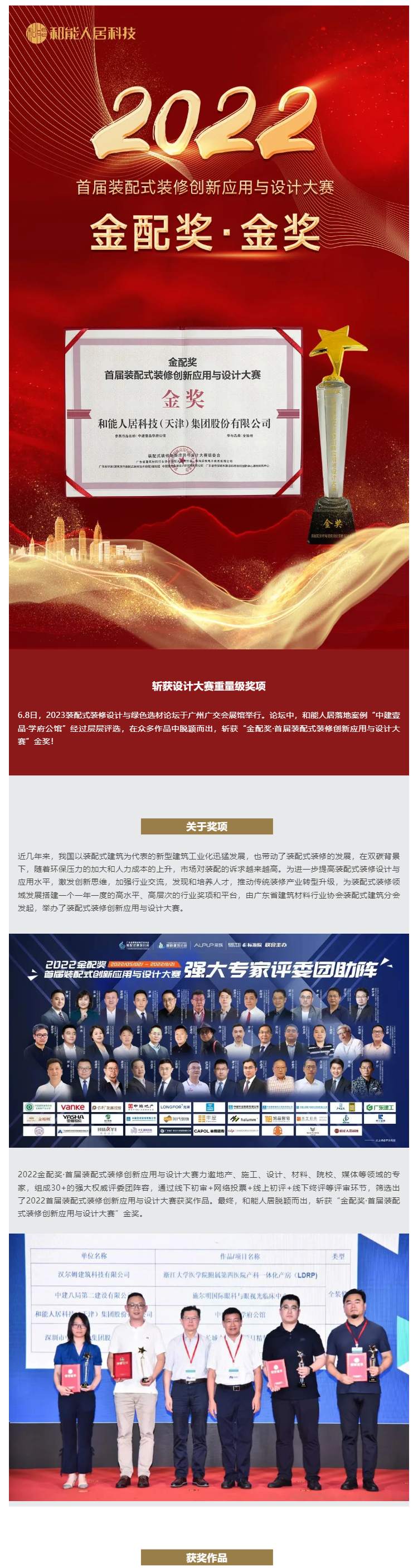 喜訊丨和能斬獲“金配獎·首屆裝配式裝修創新應用與設計大賽”金獎!